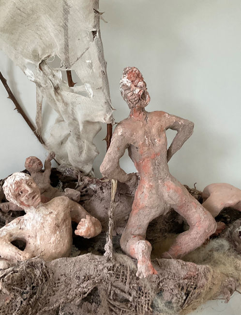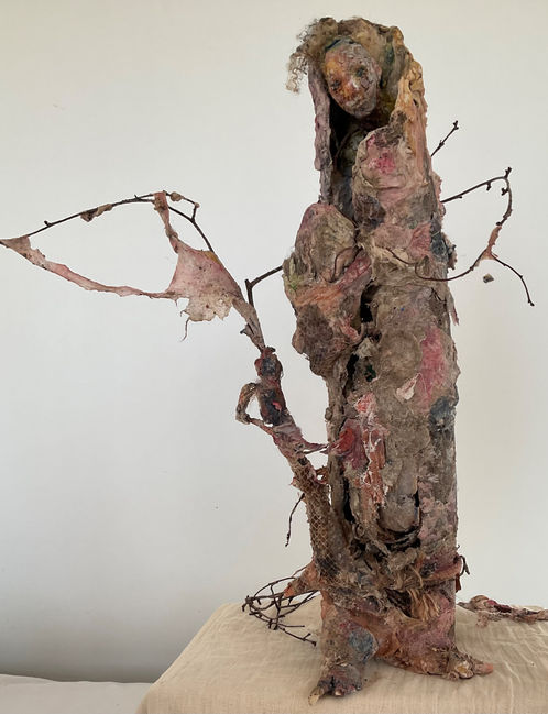 Wendy consciously and unconsciously harnesses the emotionality of her environment, fusing and transforming disparate materials such as debris, mud, brambles, bark, muslin, clay, plastic …. to create artwork. Her chosen natural and manufactured materials hold memories, emotions, thoughts and dreams, she enjoys their tactility, following their sensory rhythm to create organic sculptural forms and non-forms. Imbued with a life of their own, her work occupies an ephemeral slippery place between our internal and external worlds. Her aim is to engage viewers in an interactive immersive experience with her work.